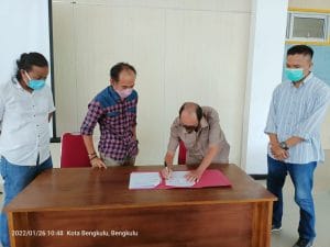 AKARNEWS. Akar Foundation pada hari ini (26 Januari 2022) menandatangani Memorandum Of Agreement (MOA) dengan Program Studi Ilmu Kelautan Universitas Bengkulu. Penandatangan nota kerjasama ini dilakukan oleh Erwin Basrin Selaku Direktur Eksekutif Akar Foundation dan Ir, Zamdial, M.Si, selaku ketua Program Studi Ilmu Kelautan Fakultas Pertanian Universitas Bengkulu. Nota Kesepakatan Kerjasama ini dibuat untuk jangka waktu 3 tahun sesuai dengan ketentuan di Pasal 3 No. 1.