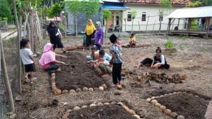 Proses penanaman dimulai lebih dahulu memagari sekitar lahan dengan menggunakan waring yang dilakukan langsung oleh para kader dan dibantu oleh Bapak-bapak untuk menjaga lahan dari hewan ternak masyarakat yang dilepas bebas. Berlanjut pada proses penggemburan tanah, para kader mencoba memanfaatkan sampah batok dan sabut kelapa untuk merapikan lahan Tanaman Pangan dan TOGA mereka. Proses ini juga dilanjutkan dengan menanam bibit yang sudah disiapkan dengan juga dibantu oleh anak-anak yang turut serta meramaikan kegiatan berkebun para kader.