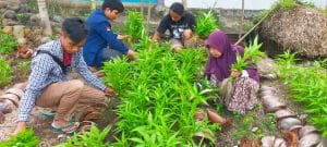 Senyum merekah dari wajah ibu-ibu kader dan mahasiswa KKN yang sedang melakukan panen dilahan pangan dan TOGA masyarakat Merpas yang sejak 6 bulan kebelakang ini di dampingi oleh Akar Foundation.