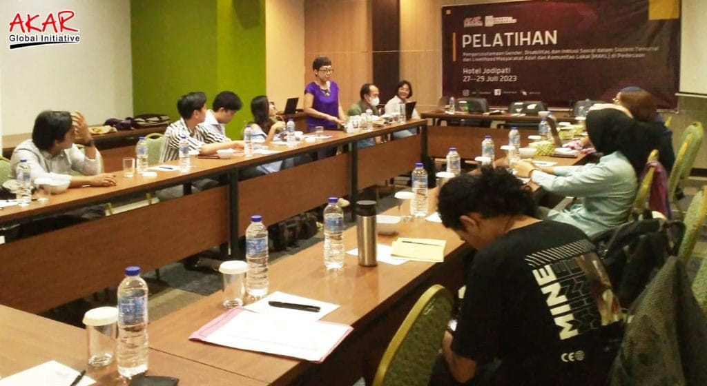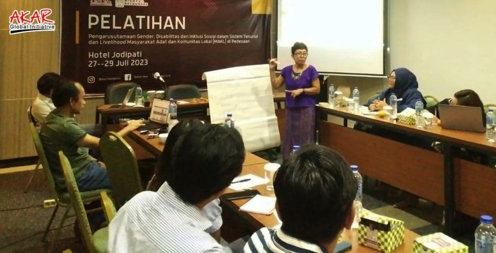 AKARNEWS. Guna meningkatkan pengetahuan dan wawasan tentang isu-isu gender, disabilitas dan inklusi (Gedsi), internal Akar Foundation menggelar pelatihan Gedsi selama 3 hari mulai tanggal 27, 28, 29 Juli 2023, di Hotel Jodipati Bengkulu. Tema kegiatannya tentang Pengarusutamaan gender, disabilitas dan inklusi dalam sistem tenurial dan livelihood Masyarakat Adat dan Komunitas Lokal (MAKL) di Pedesaan. Selaku pemateri adalah Peneliti Feminis dan Konsultan GEDSI Jakarta, Ruth Indiah Rahayu atau yang akrab disapa Yuyut.